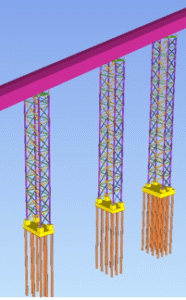 • Deep cylindrical piles anchored the towers and trestles, resisting uplift and seismic base shear.